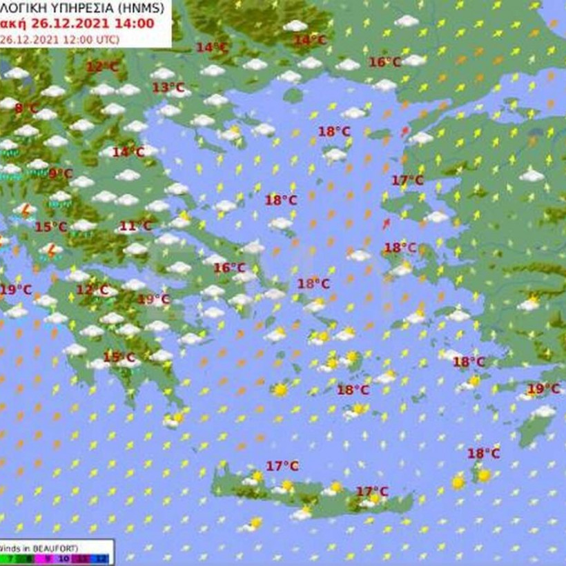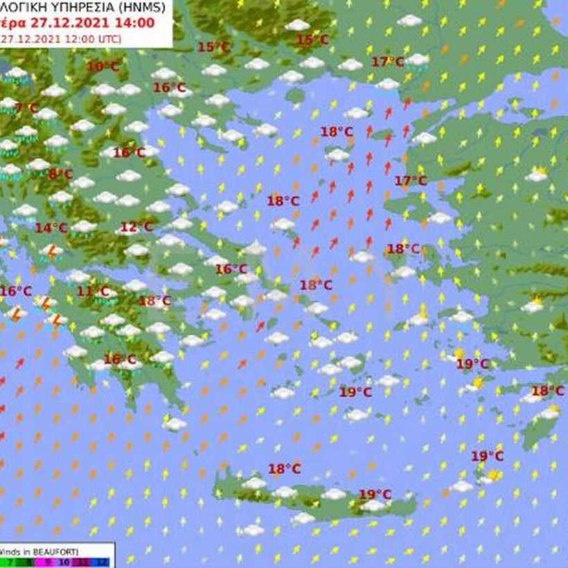 Άνεμοι: Νότιοι νοτιοδυτικοί 4 με 5 και στα βόρεια 6 με 7 μποφόρ.