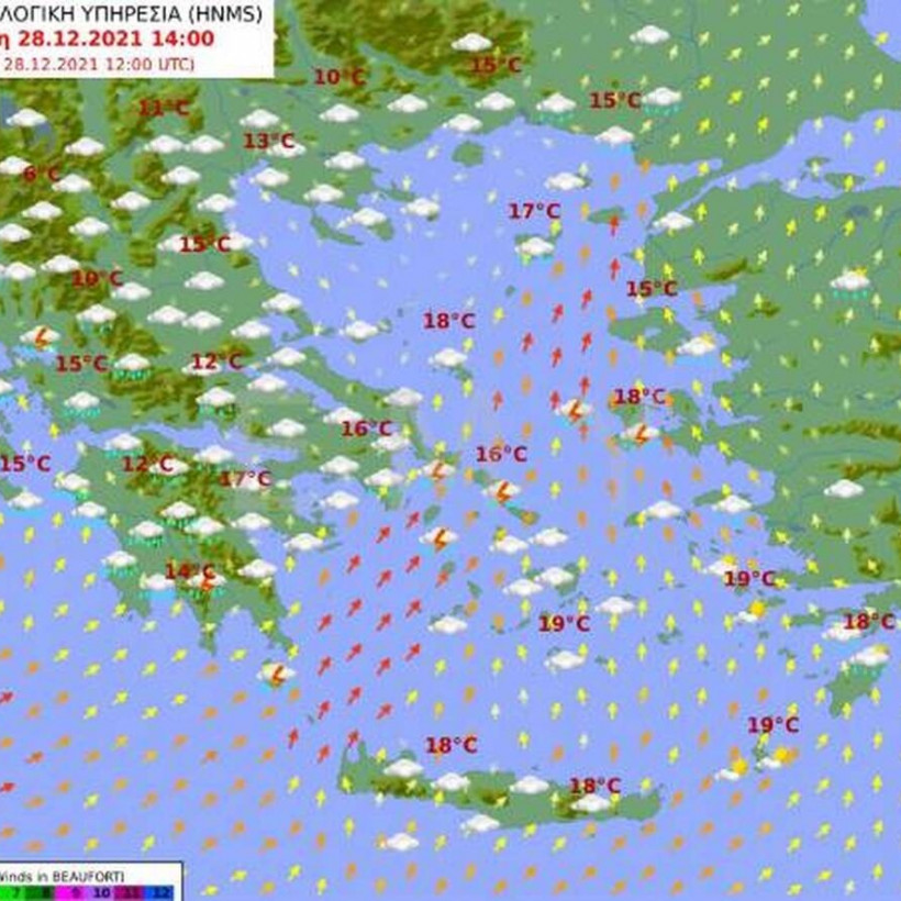 Άνεμοι: Νότιοι νοτιοδυτικοί 4 με 5 και στα βόρεια 6 μποφόρ.
