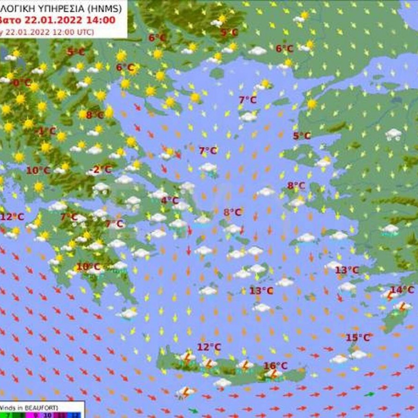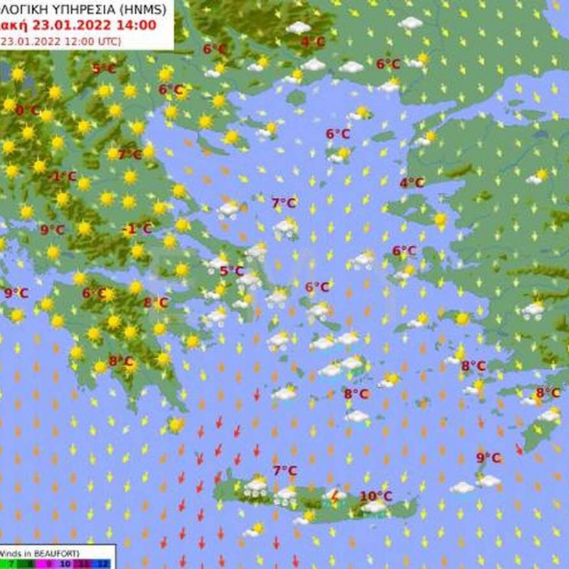 Νεφώσεις με βροχή ή χιονόνερο στην Αττική με χιονοπτώσεις στα ορεινά και τα ημιορεινά (ενδεικτικό υψόμετρο τα 500 μέτρα), με πρόσκαιρη εξασθένηση αργά το απόγευμα. Οι άνεμοι πνέουν από βόρειες διευθύνσεις 4 με 6 και πρόσκαιρα στα ανατολικά τοπικά 7 μποφόρ. Η θερμοκρασία κυμαίνεται από 1 έως 8 βαθμούς κελσίου με τη μέγιστη στα βόρεια να είναι 2 με 3 βαθμούς χαμηλότερη.