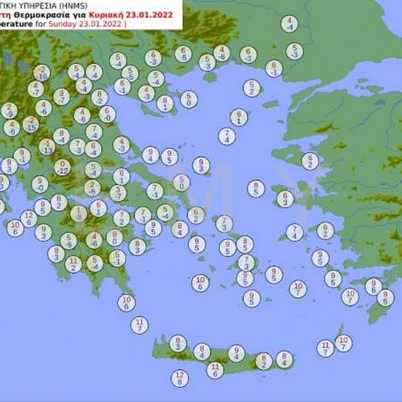 Θερμοκρασία: Από -4 έως 3 βαθμούς Κελσίου. Στη δυτική Μακεδονία 4 με 5 βαθμούς χαμηλότερη.