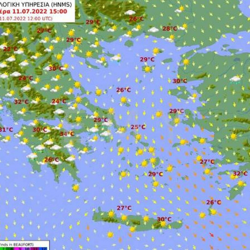 Θερμοκρασία: Από 17 έως 29 βαθμούς Κελσίου. Στη δυτική Μακεδονία η ελάχιστη 2 με 3 βαθμούς χαμηλότερη.