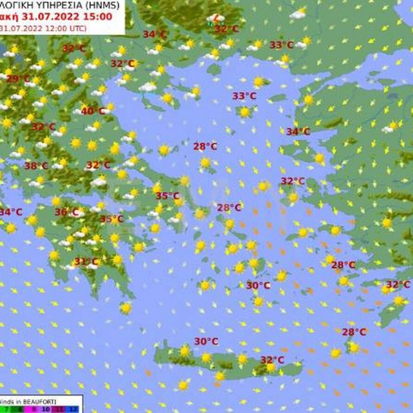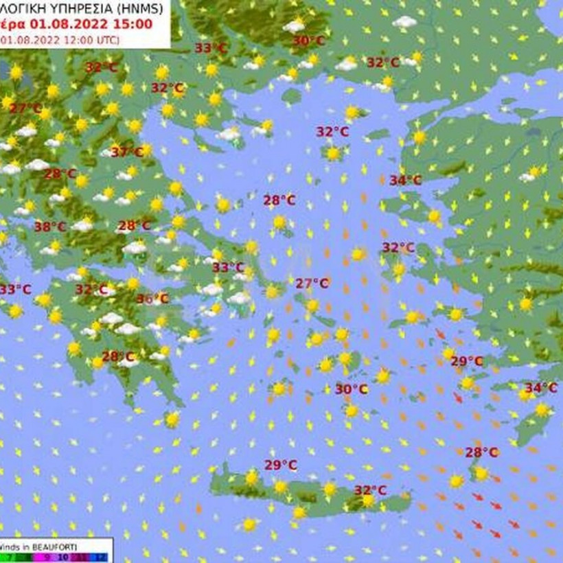 Θερμοκρασία: Έως 32 με 33 και στη νότια Κρήτη έως 37 βαθμούς Κελσίου.