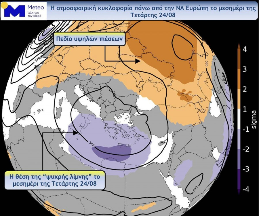 Κύρια χαρακτηριστικά του καιρού κατά τη διάρκεια της Τετάρτης 24/08 θα είναι (Γραφικό 2):