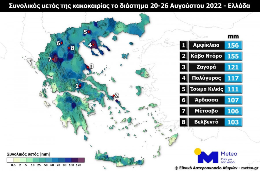 Κακοκαιρία: «Ρεκόρ» 47 ετών για τις βροχές τον Αύγουστο - Σε ποιες περιοχές έπεσε περισσότερο νερό