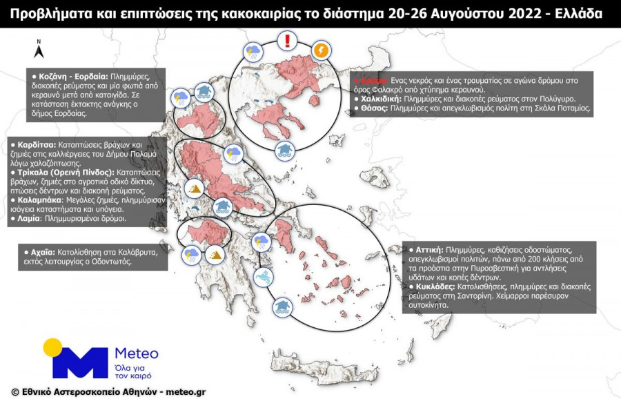 Η τελευταία φορά που είχαμε στη χώρα μας πολυήμερη κακοκαιρία μέσα στο καλοκαίρι η οποία να επηρεάζει το μεγαλύτερο μέρος της χώρας ήταν πριν από 47 χρόνια και συγκεκριμένα τη χρονική περίοδο από 30 Ιουλίου έως 5 Αυγούστου του 1975.
