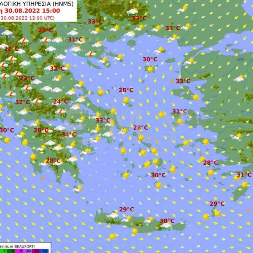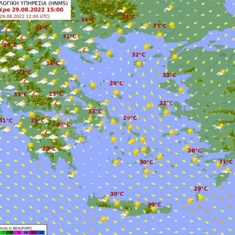 Η θερμοκρασία θα φτάσει στα ηπειρωτικά τους 31 με 33 βαθμούς. Στα νησιά τους 28 με 30 και στο ανατολικό Αιγαίο τους 31 με 32 βαθμούς Κελσίου.