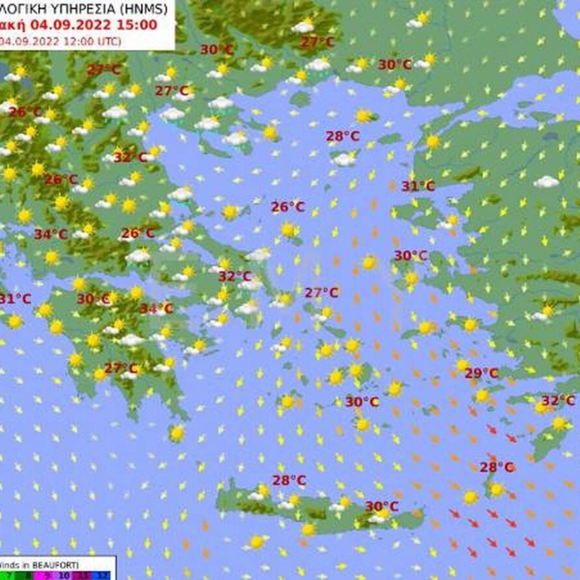 Οι άνεμοι θα πνέουν από βόρειες διευθύνσεις 3 με 5, στο Αιγαίο 5 με 6 και από το απόγευμα στα νοτιοανατολικά τοπικά έως 7 μποφόρ.