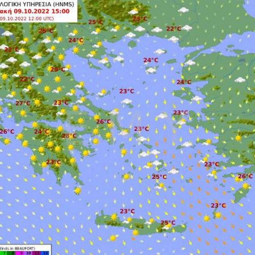 Οι άνεμοι θα πνέουν από βόρειες διευθύνσεις 3 με 4 και στο νοτιοανατολικό Αιγαίο 5 με 6 μποφόρ.