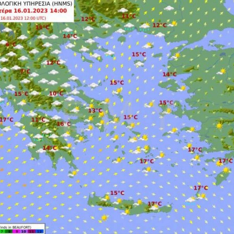 Άνεμοι: Από νότιες διευθύνσεις 4 με 5 και από το μεσημέρι 5 με 6 και στο Ιόνιο τοπικά 7 μποφόρ.
