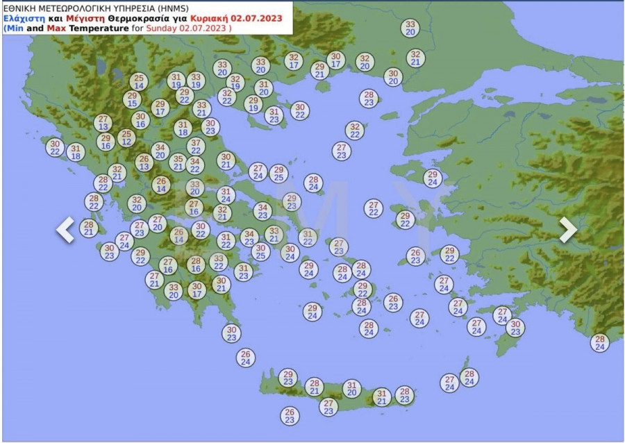 Θερμοκρασία: Από 19 έως 36 και τοπικά έως 37 βαθμούς Κελσίου.