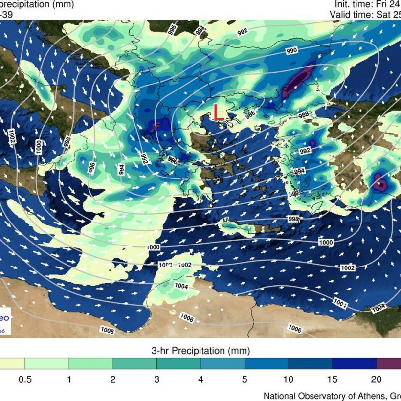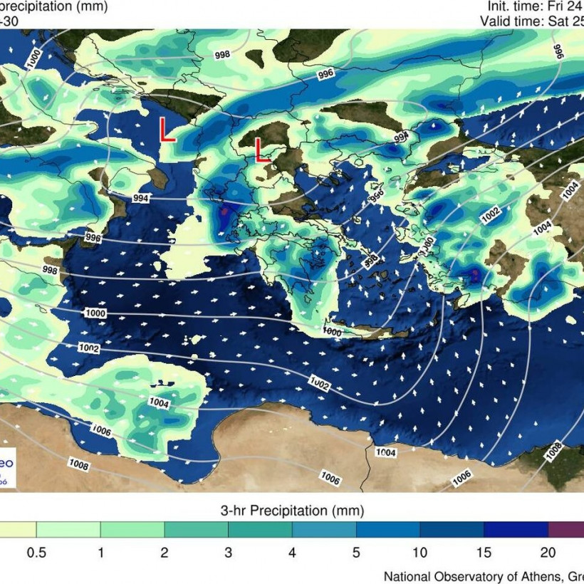 Αιτία για αυτή την επιδείνωση του καιρού θα είναι ο έντονος κυματισμός του αεροχειμάρρου πάνω από τον Βόρειο Ατλαντικό και την Ευρώπη, γεγονός που θα συμβάλει στην ταχεία ανάπτυξη και βάθυνση ενός βαρομετρικού χαμηλού στη Νότια Αδριατική τα ξημερώματα του Σαββάτου 25/11. Κατά τη διάρκεια του Σαββάτου 25/11, αυτό το βαρομετρικό χαμηλό αναμένεται να κινηθεί γρήγορα νοτιοανατολικά προς το Βορειοανατολικό Αιγαίο και εν συνεχεία την Κυριακή 26/11 βορειοανατολικά προς τη Μαύρη Θάλασσα όπως διακρίνεται και στην παρακάτω ομάδα χαρτών.