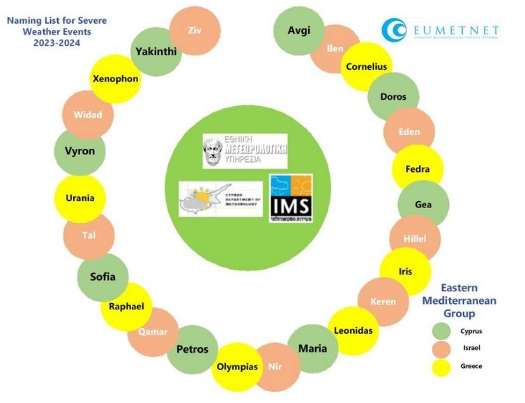 Η ΕΜΥ, έχει ξεκινήσει από το 2021 σε συνεργασία με τις Μετεωρολογικές Υπηρεσίες της Κύπρου και του Ισραήλ, την ονοματοδοσία τέτοιων συστημάτων κατά τη διάρκεια της ψυχρής αλλά και της θερμής περιόδου του έτους, συγκροτώντας την ομάδα της ανατολικής Μεσογείου.