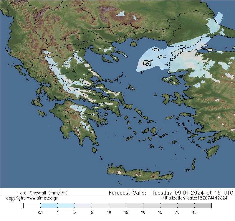 Σύμφωνα με τον μετεωρολόγο της ΕΡΤ, Παναγιώτη Γιαννόπουλο χιόνια αναμένονται στα ορεινά της Εύβοιας, στο Πήλιο αλλά πιθανόν και στην Πάρνηθα ενώ παγετός θα σημειωθεί τις πρωινές και βραδινές ώρες στα κεντρικά και βόρεια ηπειρωτικά.