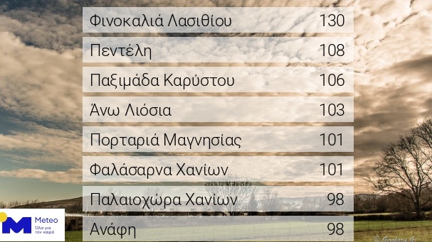 Δείτε τις οι 8 μεγάλυτερες ριπές ανέμου έως τις 10:00 το πρωί της Τρίτης, όπως καταγράφηκαν από το meteo.gr.