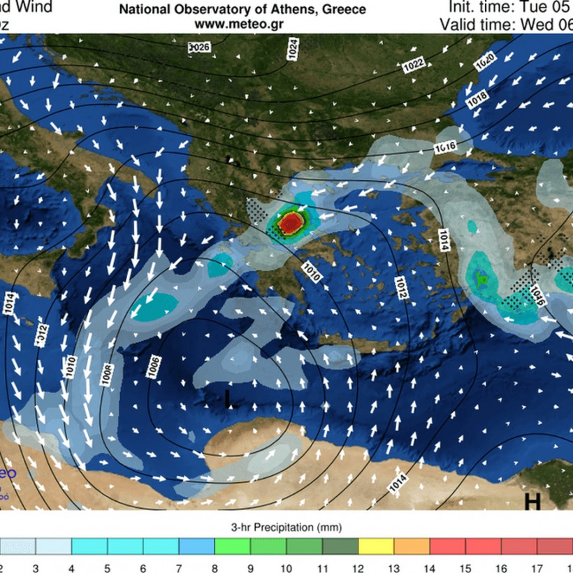 Οι βροχές και οι καταιγίδες από το μεσημέρι στην Πελοπόννησο (κυρίως στα νότια τμήματα), στο Νότιο Ιόνιο, στο Νοτιοδυτικό Αιγαίο και στη Δυτική Κρήτη θα ενταθούν και βαθμιαία θα επεκταθούν βορειοανατολικά, επηρεάζοντας έως το βράδυ τα υπόλοιπα τμήματα του Νοτίου και Κεντρικού Αιγαίου, την Κεντρική και Ανατολική Στερεά (συμπεριλαμβανομένης της Αττικής) και την Εύβοια.