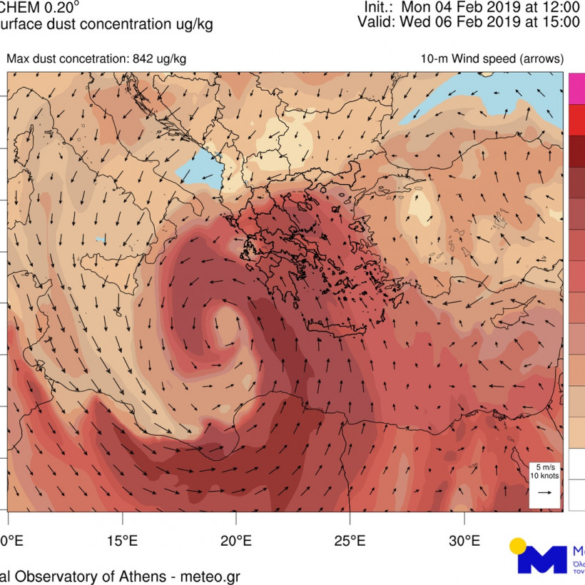 Σύμφωνα με τα έως τώρα διαθέσιμα προγνωστικά στοιχεία του ΕΑΑ-meteo, την Πέμπτη προβλέπονται βροχές και τοπικές καταιγίδες στα κεντρικά και νότια, με κατά τόπους έντονα φαινόμενα στην Κρήτη. Κατά τις πρωινές ώρες οι συγκεντρώσεις σκόνης στην ατμόσφαιρα θα είναι ιδιαίτερα αυξημένες. Οι άνεμοι θα στραφούν σε βόρειους ισχυρούς έως σχεδόν θυελλώδεις, 6-7 μποφόρ, ενώ η θερμοκρασία θα παρουσιάσει πτώση.