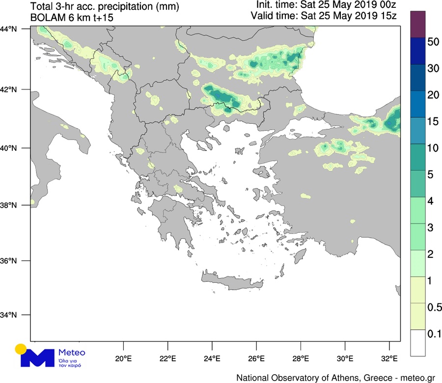 Το Σάββατο 25/05 αναμένονται λίγες νεφώσεις, αυξημένες τις μεσημεριανές και απογευματινές ώρες στα ηπειρωτικά, με τοπικούς όμβρους ή μεμονωμένες καταιγίδες κυρίως στα ορεινά της Ανατολικής Μακεδονίας και της Θράκης .