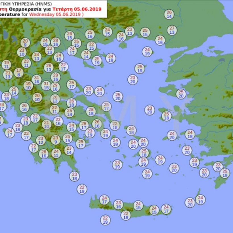 Καιρός: Η πρόγνωση του καιρού για την Τετάρτη, 5 Ιουνίου 2019 από την Εθνική Μετεωρολογική Υπηρεσία (ΕΜΥ).