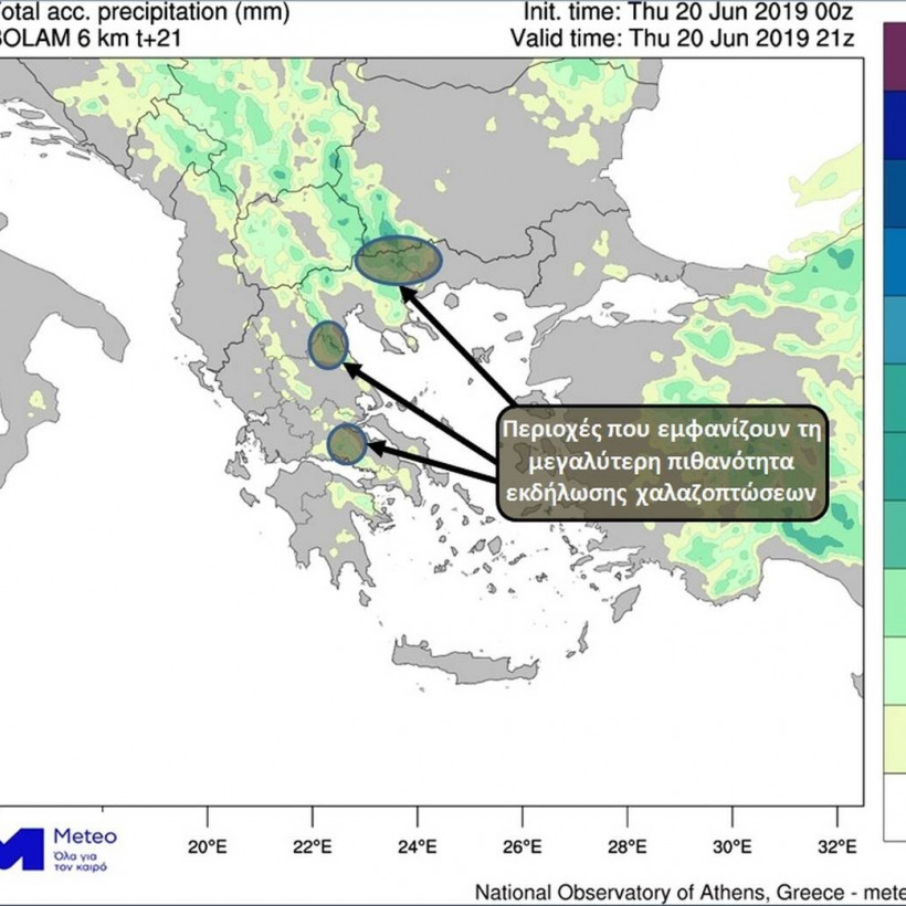 Δείτε στη gallery που ακολουθεί, τα εκτιμώμενα ύψη βροχής κατά τη διάρκεια της Πέμπτης αλλά και τις περιοχές όπου εμφανίζουν τη μεγαλύτερη πιθανότητα για εκδήλωση χαλαζοπτώσεων: