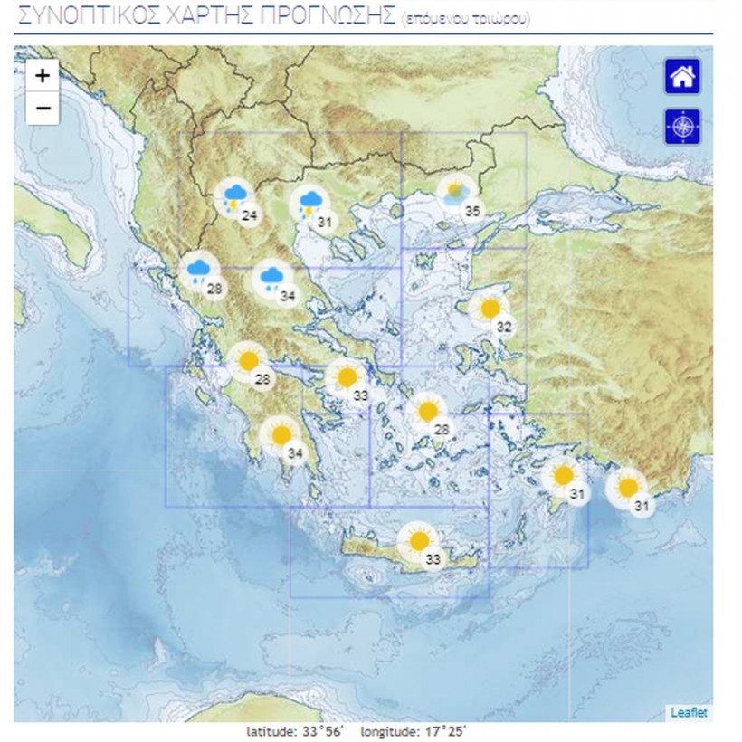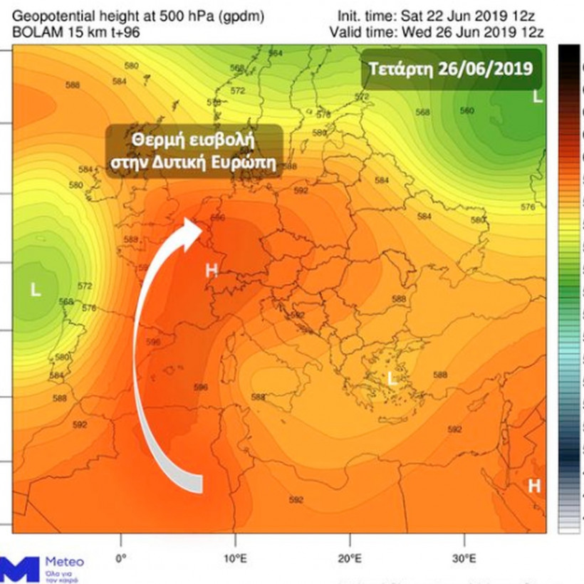 Η Ελλάδα – σύμφωνα με την μετεωρολογική υπηρεσία meteo του Εθνικού Αστεροσκοπείου Αθηνών - δεν θα επηρεαστεί άμεσα από τον καύσωνα της Δυτικής Ευρώπης, τουλάχιστον έως το Σαββατοκύριακο 29-30 Ιουνίου, καθώς θα βρίσκεται κάτω από την επιρροή ενός βαρομετρικού χαμηλού, που θα οδηγήσει σε άστατο καιρό και φυσιολογικές για την εποχή θερμοκρασίες με μέγιστες τιμές γύρω στους 32 έως 35 βαθμούς Κελσίου.