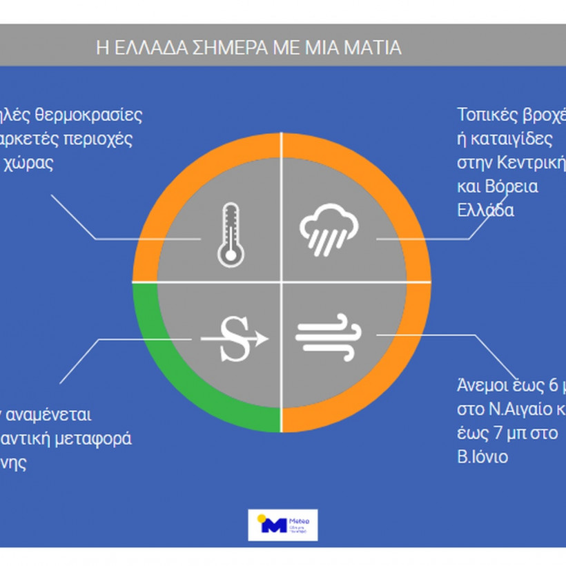 υπόλοιπη χώρα γενικά αίθριος, με πρόσκαιρες νεφώσεις τις μεσημβρινές