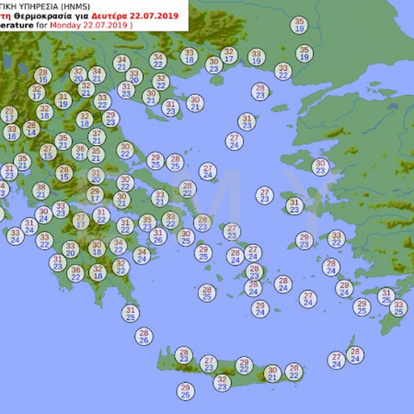 Καιρός: Νέα άνοδο θα σημειώσει σήμερα Δευτέρα (22/7) η θερμοκρασία - Αναλυτική πρόγνωση για όλη τη χώρα - Δείτε τους προγνωστικούς χάρτες της Εθνικής Μετεωρολογικής Υπηρεσίας (ΕΜΥ)