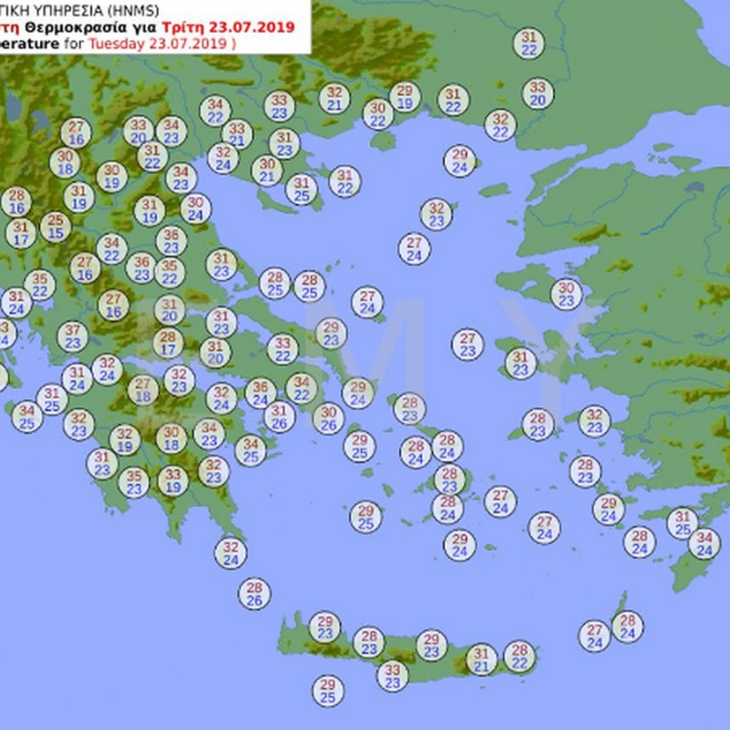 Ο καιρός την Τρίτη, 23 Ιουλίου