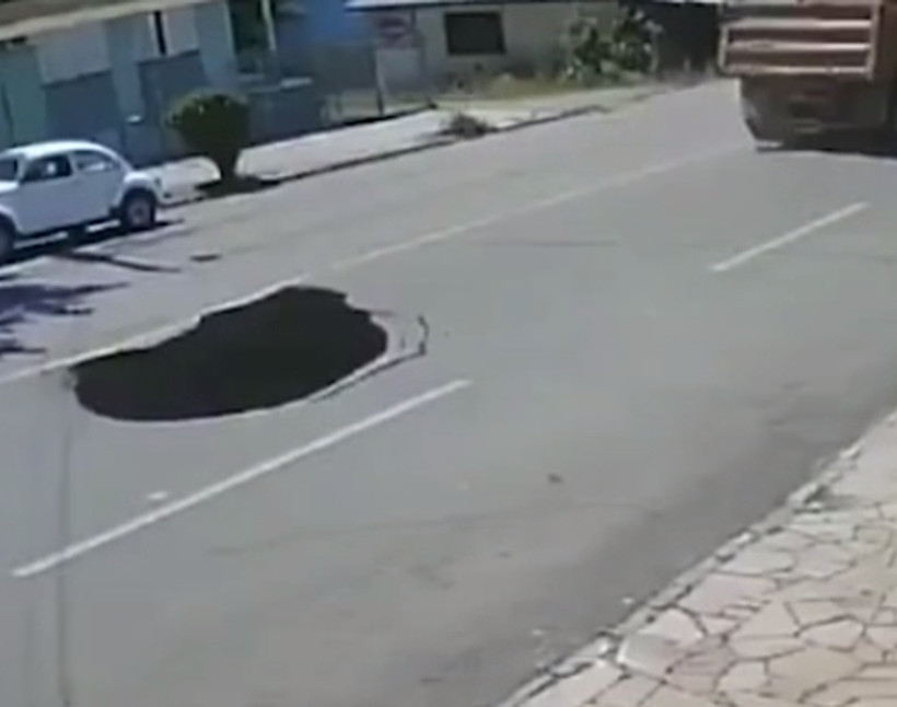 Το περιστατικό μάλιστα καταγράφηκε από κάμερα ασφαλείας κοντινού σπιτιού στο Ρίο Γκράντε ντο Σουλ και δείχνει πως όλα ξεκίνησαν όταν ένα μεγάλο φορτωμένο φορτηγό πέρασε από το σημείο.