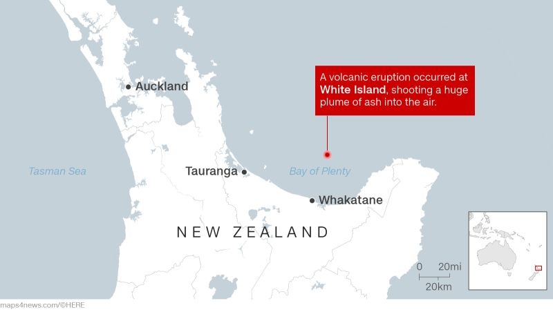 Οι τουρίστες που ήταν παρόντες κατά την ηφαιστειακή έκρηξη που σημειώθηκε χθες, Δευτέρα, στο νησί Γουάιτ της Νέας Ζηλανδίας βρισκόντουσαν εκεί παρά μια πρόσφατη αύξηση της ηφαιστειακής του δραστηριότητας, αν και οι ειδικοί δηλώνουν ότι δεν μπορούν να γίνουν ακριβείς προβλέψεις για τις εκρήξεις αυτές. Ωστόσο η πρωθυπουργός της χώρας Τζασίντα Άρντερν δήλωσε ότι υπάρχουν ερωτήματα που πρέπει να απαντηθούν και ότι η κυβέρνηση θα ερευνήσει το περιστατικό.