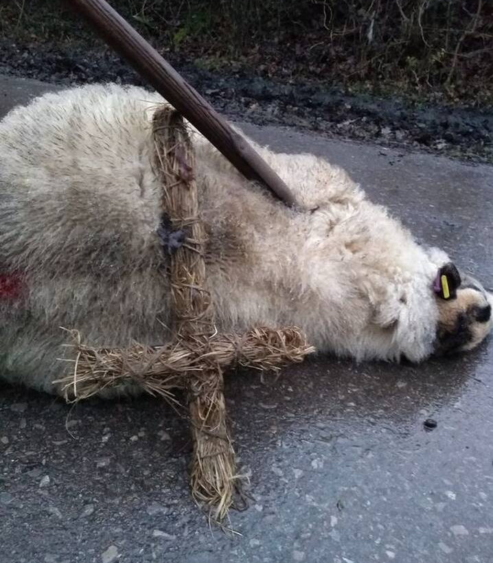 Bρήκαν σφαγμένο πρόβατο σε σατανιστική τελετή στη μέση του δρόμου με ανάποδο σταυρό δίπλα του