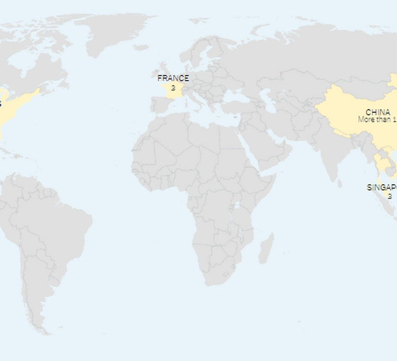 - Η Ταϊλάνδη έχει αναφέρει πέντε κρούσματα, η Αυστραλία τέσσερα, η Σιγκαπούρη, η Γαλλία, η Ιαπωνία, η Ταϊβάν και η Μαλαισία από τρία, οι ΗΠΑ δύο περιπτώσεις και το Νεπάλ ένα κρούσμα.