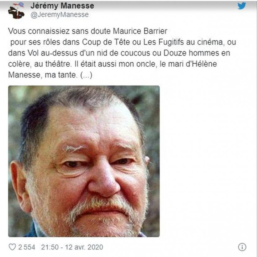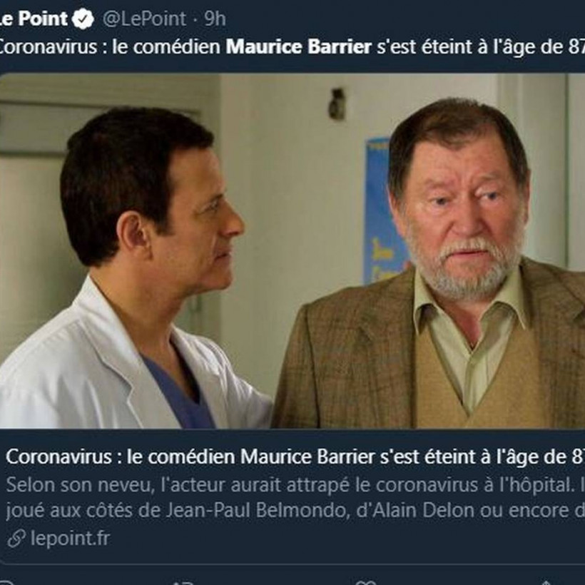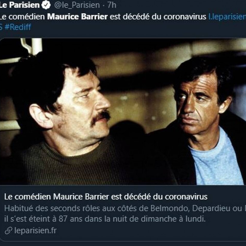 Την τελευταία του πνοή σε ηλικία 87 ετών στη Γαλλία, άφησε εξαιτίας επιπλοκών που σχετίζονται με τον κορονοϊό, ηθοποιός, Maurice Barrier, γνωστός για ρόλους πλάι στους θρύλους του γαλλικού σινεμά, Jean-Paul Belmondo, Jean Gabin, Alain Delon, Pierre Richard και Gérard Depardieu.
