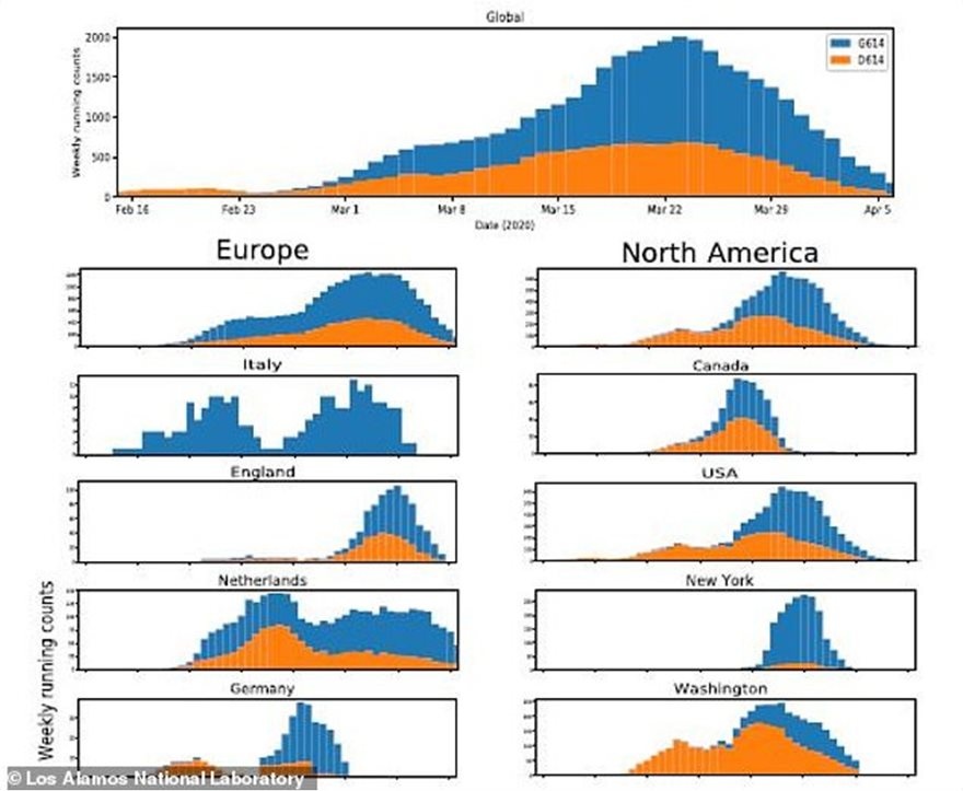 Ερευνητές στο Εθνικό Εργαστήριο του Λος Άλαμος στο Νέο Μεξικό υποστηρίζουν ότι το μεταλλαγμένο στέλεχος άρχισε να εξαπλώνεται στις αρχές Φεβρουαρίου στην Ευρώπη.