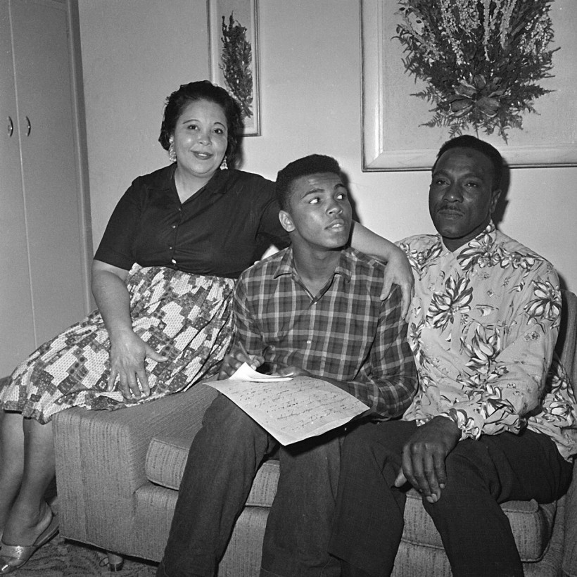 Ο Κάσιους Μαρσέλους Κλέι (Cassius Marcellus Clay), όπως ήταν το αρχικό ονοματεπώνυμο του προτού ασπασθεί τον Μουσουλμανισμό, γεννήθηκε στις 17 Ιανουαρίου 1942 στο Λούισβιλ της πολιτείας Κεντάκι των ΗΠΑ. Ο πατέρας του ήταν επιγραφοποιός και η μητέρα του οικιακή βοηθός. Η οικογένεια Κλέι είχε ακόμη δύο αγόρια και ένα κορίτσι.