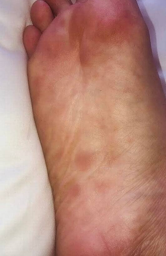 Η Sarah Churchill, είδε στις αρχές του περασμένου Φεβρουάριου εξανθήματα τα πόδια και στα χέρια της, τα οποία της προκαλούσαν φαγούρα αλλά και αρκετό πόνο. Αρχικά δεν έδωσε σημασία καθώς πίστευε πως πρόκειται για κάποια αλλεργία, όμως η κατάσταση ολοένα και χειροτέρευε.