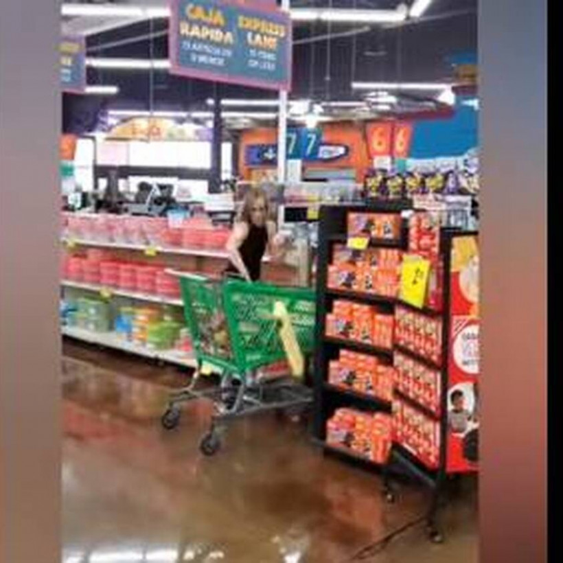 Η ξανθιά γυναίκα σε ένα βίντεο που κάνει τον γύρο του διαδικτύου, πετάει με μένος τα ψώνια της από το εσωτερικό του καροτσιού της, ενώ κατά τη διάρκεια του «ξεσπάσματός» της βρίζει ακατάπαυστα.