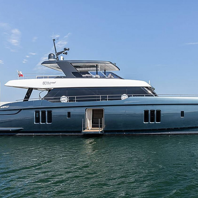 Το 80 ποδιών γιοτ, σχεδιασμού Sunreef 80 Power, είναι ιδανικό για υπεράκτια ταξίδια. Διαθέτει δύο μηχανές 1.200 ίππων και μπορεί να φθάσει τελική ταχύτητα 24 κόμβων ή ταχύτητα κρουαζιέρας 14 κόμβων.