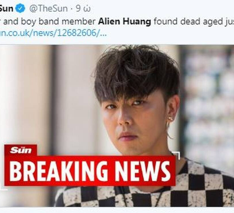 Ο ηθοποιός, τραγουδιστής και σχεδιαστής μόδας, Alien Huang, πέθανε σε ηλικία 36 ετών. Η αστυνομία επιβεβαίωσε ότι το πτώμα του 36χρονου βρέθηκε το πρωί της Τετάρτης στο σπίτι του, στο Beitou της Ταϊπέι, σύμφωνα με το Variety.