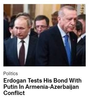 Από τις 27 Σεπτεμβρίου, που ξεκίνησε ο νέος γύρος των συγκρούσεων για το Ναγκόρνο-Καραμπάχ, το Κρεμλίνο έδωσε στη δημοσιότητα τουλάχιστον δύο συνομιλίες του Πούτιν με τον Αρμένιο πρωθυπουργό Νικόλ Πασινιάν, αλλά καμία με τον Ερντογάν ή τον Αζέρο πρόεδρο Ιλχάμ Αλίεφ. Ανώτερος αξιωματούχος στην Άγκυρα υποστηρίζει ότι η Τουρκία είναι η μόνη νατοϊκή χώρα που ορθώνει ανάστημα στις ρωσικές πιέσεις στην περιοχή.