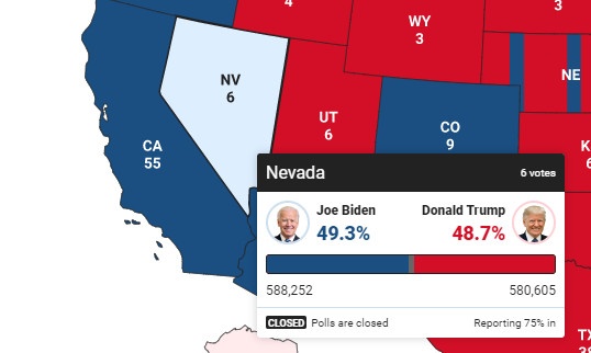 Ωστόσο, παρά το γεγονός πως Πενσυλβάνια, Τζώρτζια, η Αλάσκα και η Βόρεια Καρολίνα προβλέπεται πως θα «πάνε» στον Ντόναλντ Τραμπ, η Νεβάδα είναι αυτή που θα κρίνει ποιος θα είναι ο επόμενος πρόεδρος των ΗΠΑ.