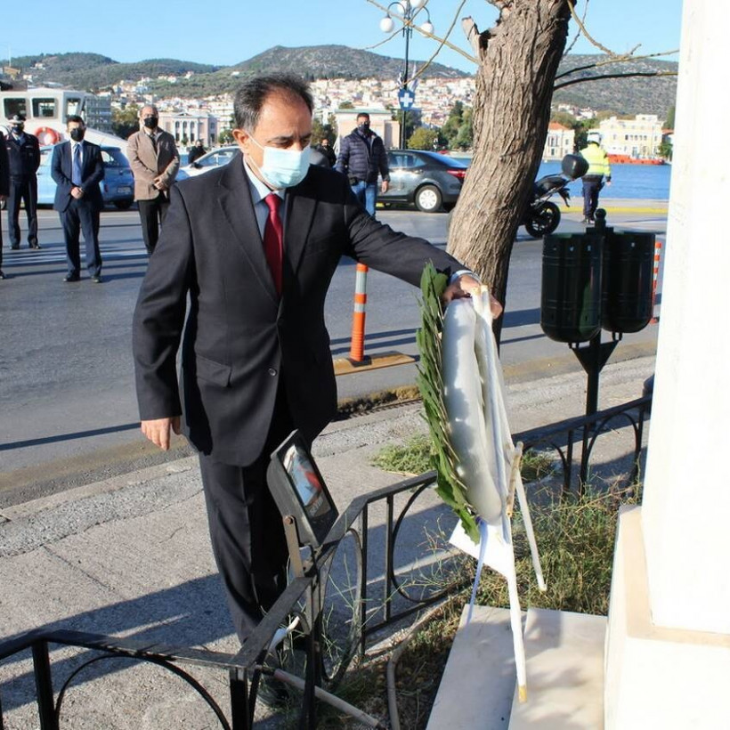 Ακολούθησε κατάθεση στεφάνων στο μνημείο της απελευθέρωσης στην πλατεία ελευθερίας στο κιόσκι της Μυτιλήνης.