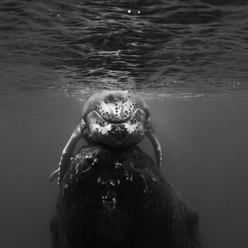 Με τον φακό του αιχμαλώτισε ένα κοπάδι μεγαλοπτεροφαλαινών (hupmback whale), καθώς αυτοί οι «ευγενικοί γίγαντες» έκαναν μανούβρες γύρω του.