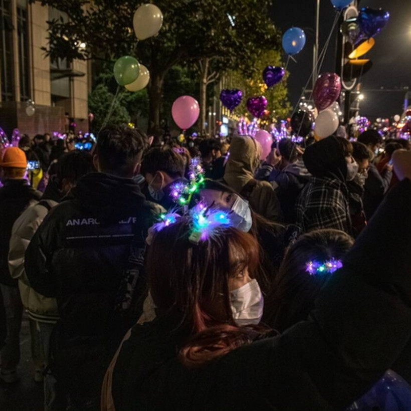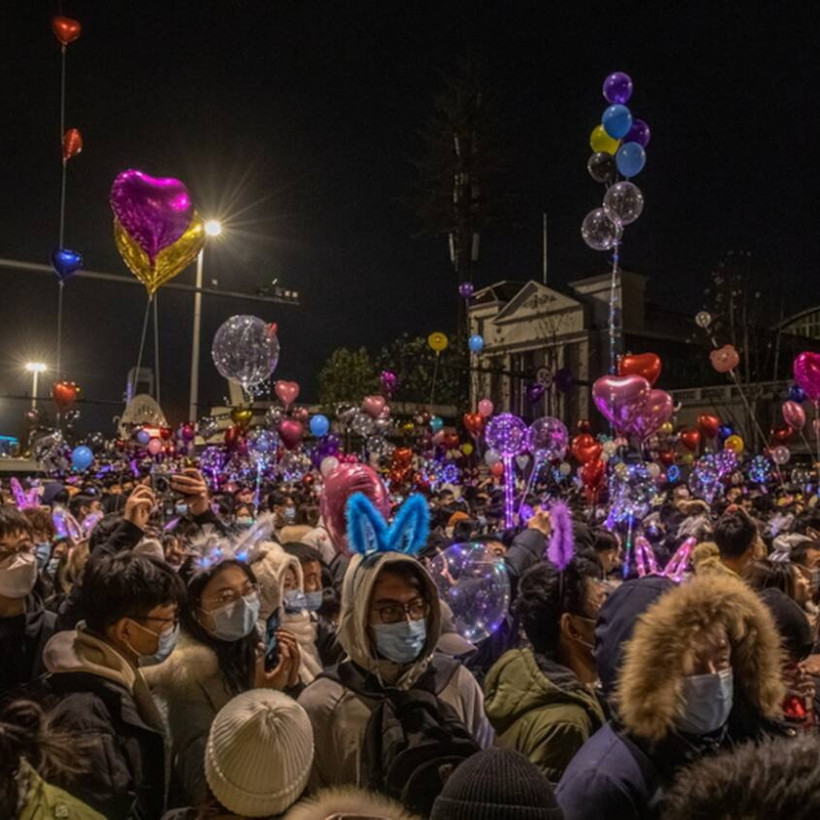 Οι πολίτες της κινεζικής πόλης πλημμύρισαν τους δρόμους γύρω από το δημαρχείο κρατώντας μπαλόνια, με κάποιους να φορούν μάσκες, άλλους να τις έχουν κατεβάσει κι άλλους να μην φορούν καθόλου.