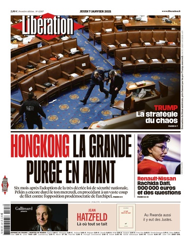 «Τραμπ: η στρατηγική του χάους» είναι ο πρωτοσέλιδος τίτλος της γαλλικής εφημερίδας Liberation, η οποία τιτλοφορεί το ρεπορτάζ στις εσωτερικές σελίδες της «Ο Τραμπ βάζει φωτιά στην Ουάσινγκτον». «Η επίθεση του Ντόναλντ Τραμπ εναντίον της αμερικανικής δημοκρατίας πήρε την Τετάρτη μια στροφή τόσο συγκεκριμένη όσο και συμβολική, όταν μερικοί από τους οπαδούς του, κινητοποιημένοι από την ομιλία του, κατάφεραν να διεισδύσουν δια της βίας μέσα στο Καπιτώλιο».