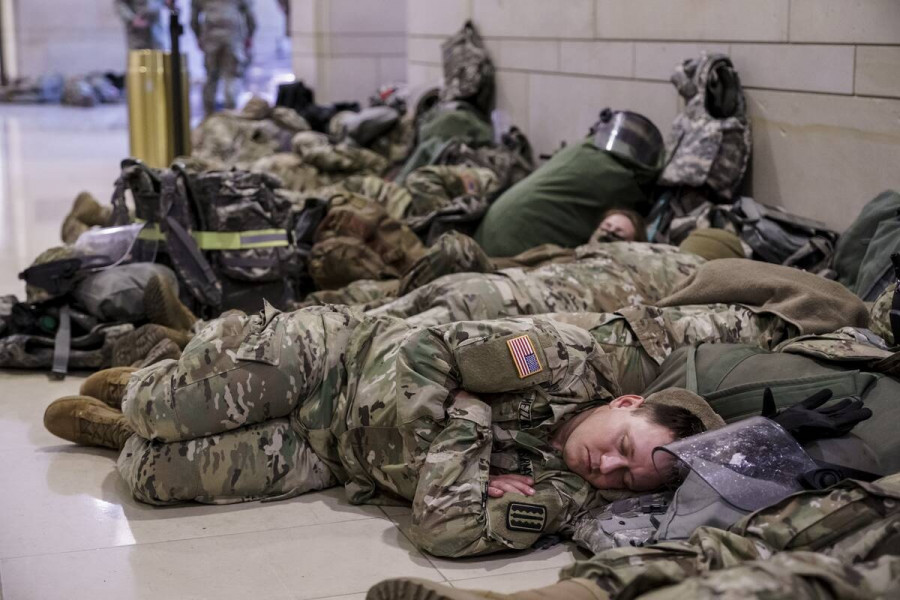 Μετά την πρωτόγνωρη «πολιορκία» που έζησε η αμερικανική Δημοκρατία, με την εισβολή διαδηλωτών στο Καπιτώλιο, την Τετάρτη 6 Ιανουαρίου, σημερινές εικόνες κάνουν τον γύρο του διαδικτύου με τους στρατιώτες της εθνοφρουράς να έχουν κυριολεκτικά στρατοπεδεύσει μέσα στον κτίριο.