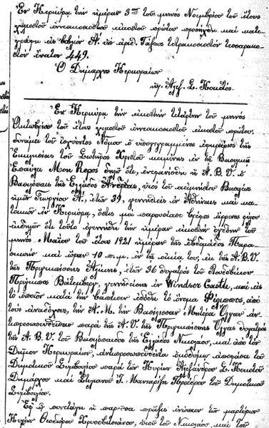 Στο έγγραφο αναφέρεται λεπτομερώς πώς ο πρίγκιπας Ανδρέας της Ελλάδας, ο πατέρας του Φίλιππου, παρουσίασε ένα αγοράκι στον ιερέα, λέγοντας του ότι γεννήθηκε στις 10 Μαΐου 1921 στις 10 π.μ - Σημάδια εγκατάλειψης στο Ανάκτορο του Μον Ρεπό