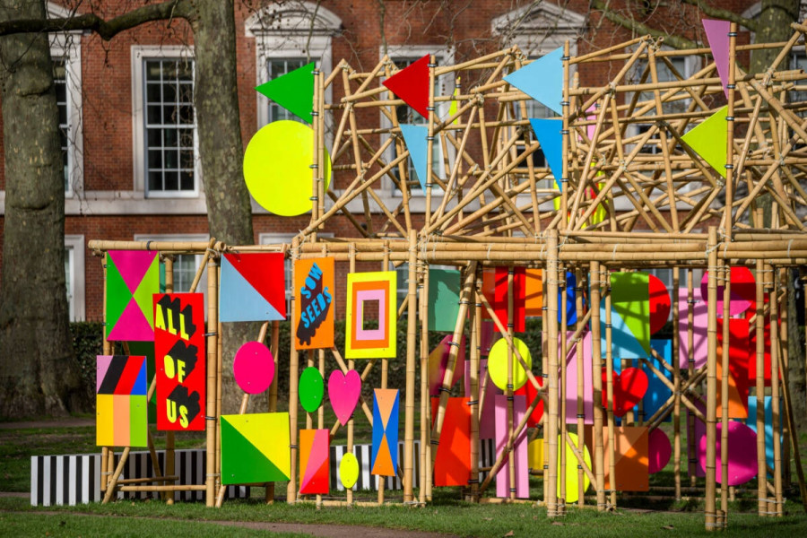 «Έχουν περιφραχθεί οι κόσμοι μας κι έχουμε χρόνο να στοχαστούμε και να αφοσιωθούμε στις ζωές μας με πολλούς διαφορετικούς τρόπους. Είχαμε χρόνο να εκτιμήσουμε το εδώ και το τώρα, να συνδεθούμε ξανά με τη φύση και να βαδίσουμε με πιο αργό βήμα» είπε, σύμφωνα με το Designboom, η Myerscough. «...οι χώροι έξω είναι ασφαλέστεροι για να είναι κανείς εκεί, άρα χρειάζεται να τους κυριεύσουμε και να ξαναφέρουμε στην καθημερινότητα απρόσμενη χαρά. Η εγκατάσταση είναι μια απάντηση σε αυτούς τους καινούργιους καιρούς, μια δομή από μπαμπού που υψώνεται απ' το χορτάρι φέρνοντας, άμεσα, χρώμα και χαρά».