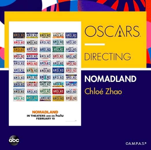 Η Ζάο ήδη απέσπασε με το «Nomadland» Χρυσή Σφαίρα, BAFTA, Indies και 55 ακόμα βραβεία σκηνοθεσίας στις κριτικές ενώσεις της Αμερικής.