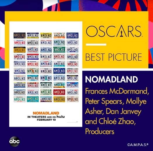 Το Όσκαρ Καλύτερης Ταινίας κέρδισε η ταινία «Nomadland» της Κλόι Ζάο.