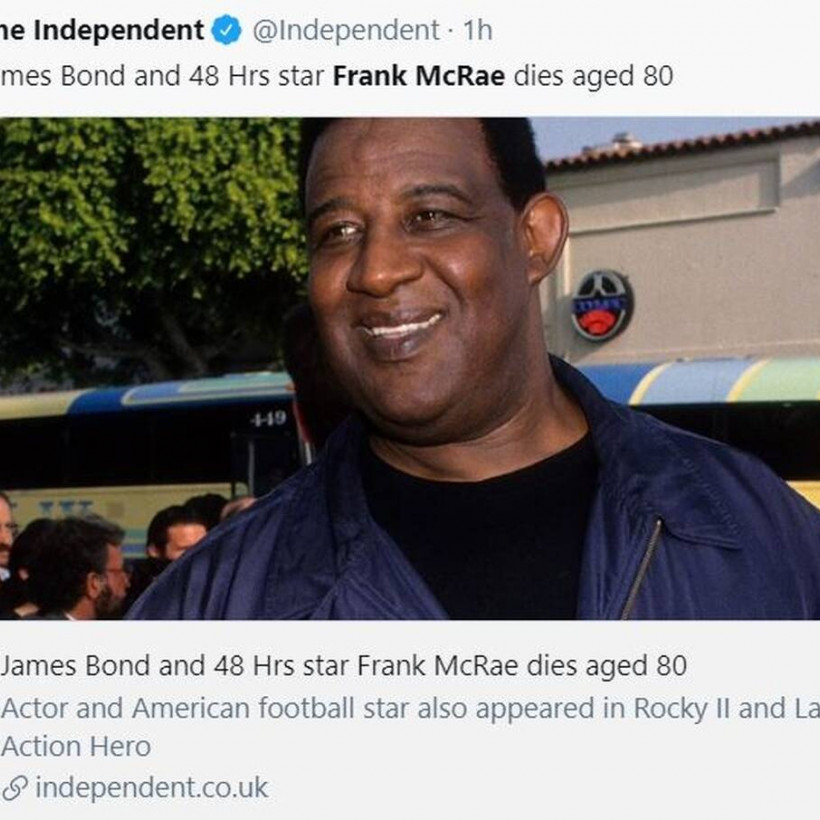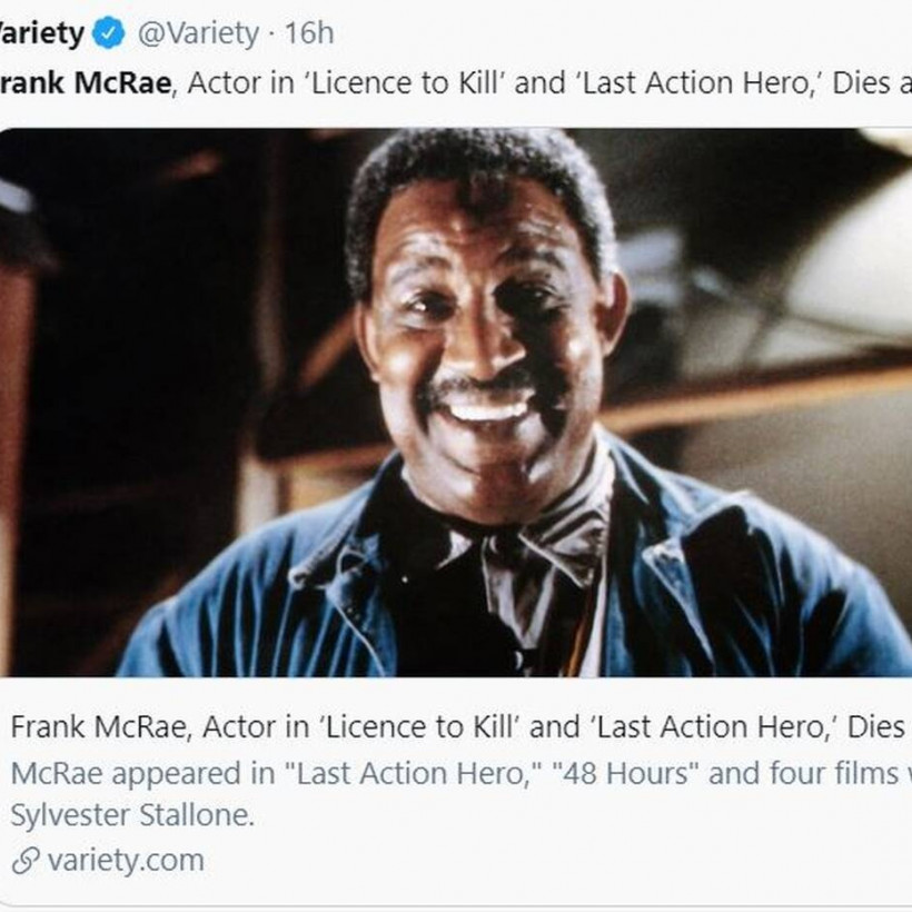 Ο Frank McRae, ο πρωταγωνιστής της δεκαετίας του '80 και του '90 που εμφανίστηκε σε ταινίες όπως το "License To Kill" και το "Last Action Hero", πέθανε από καρδιακή προσβολή στις 29 Απριλίου, η νύφη του επιβεβαίωσε το Variety. Ήταν 80 ετών.